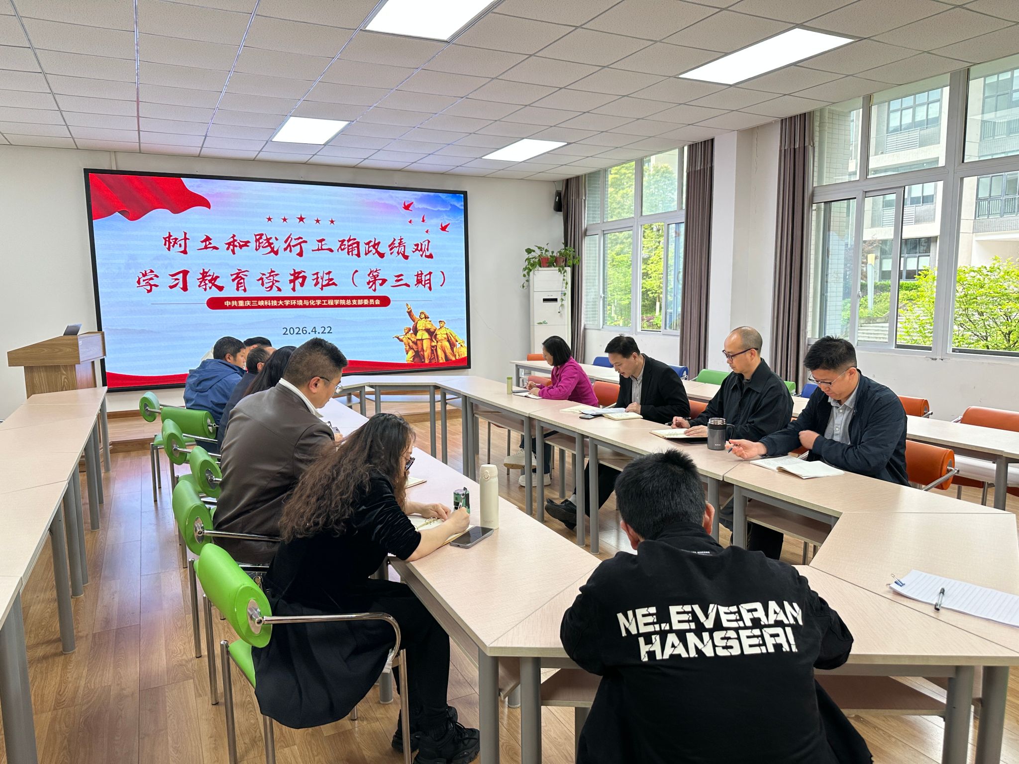 4月22日下午,学院党总支举办树立和践行正确政绩观学习教育读书班(第三期)暨党建工作会。学院领导班子成员、党总支委员、各党支部书记参加学习和会议。