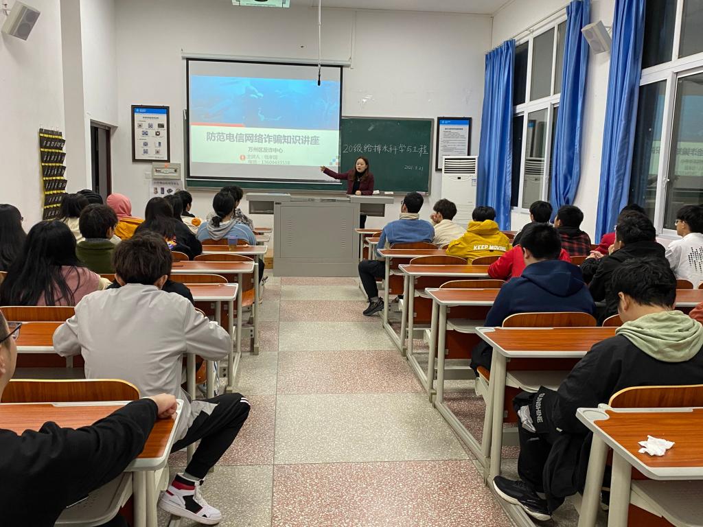 主题班会上,全体辅导员结合近年来发生的网络贷款诈骗、刷单诈骗、冒充“公检法”诈骗、“杀猪盘”诈骗、虚假购物诈骗、冒充领导和熟人类诈骗、游戏账号和装备虚假交易类诈骗、裸聊敲诈勒索等案例视频,告知同学们如何识别诈骗分子——诈骗分子无论怎样花言巧语,手法如何翻新,最后都要落到一个点上,就是要钱。提醒同学们,千万不要轻信那种来历不明的电话、短信,不要轻易透露自己银行、支付宝、微信等金融信息,如果有疑问的话,应及时向辅导员咨询核实,必要时拨打110报警。对于如何防范网络电信诈骗——要采取不轻信、不透露、不汇款、不刷单的措施。此外,辅导员呼吁学生党员、学生干部、寝室长充分发挥自身力量,组建反诈骗宣传队,确保宣传教育入脑入心,做到面对面宣传。最后,各年级辅导员结合年级实际情况,对就业、党史知识答题、心理普测、意外保险购买等方面进行了提醒和布置。
