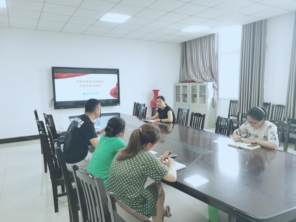 2021年7月16日9:00,环化学院在慎思楼4-303召开2020-2021学年第二学期学生工作总结会,学院党总支书记谢昆、党总支副书记代小菊和全体辅导员参会,会议由代小菊主持。