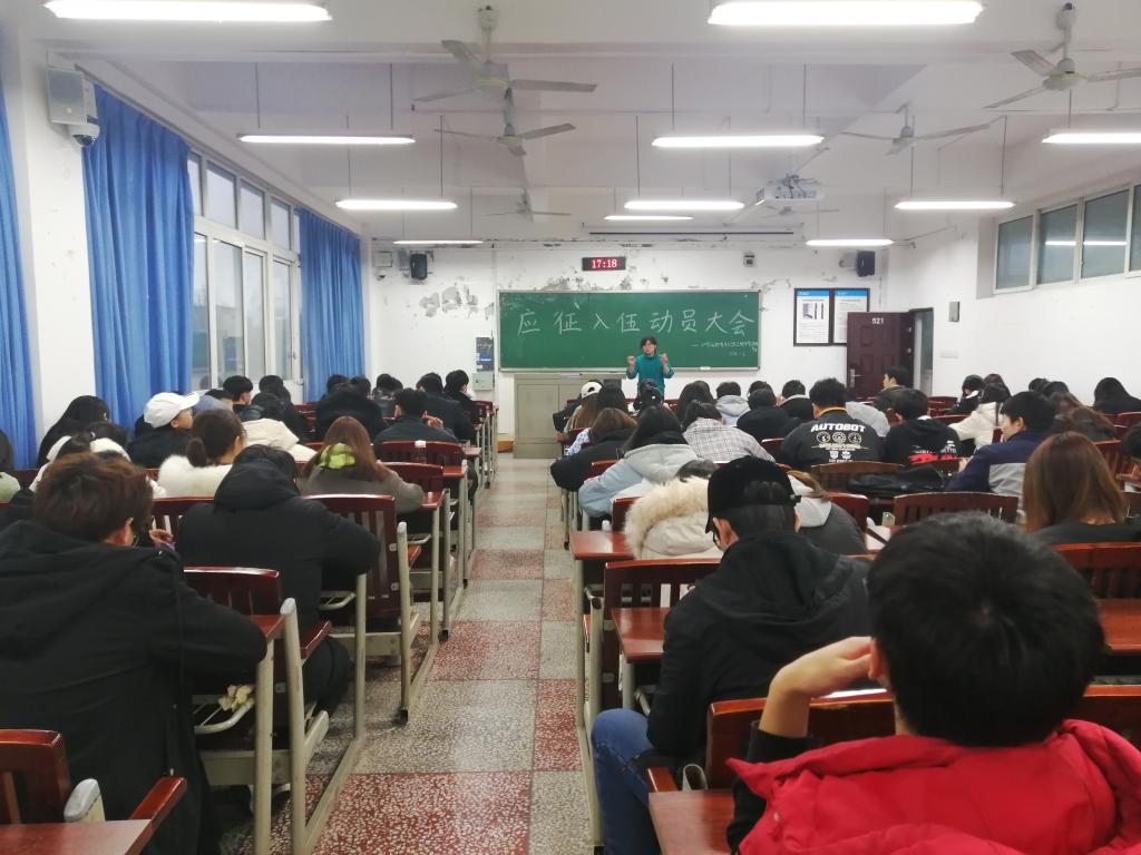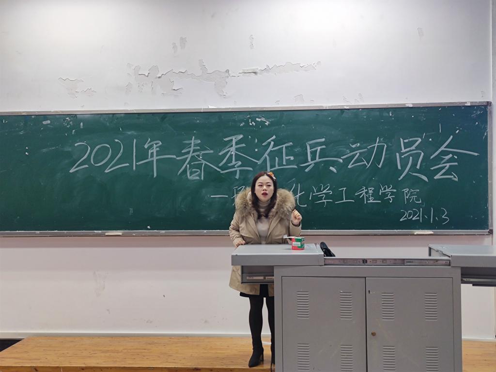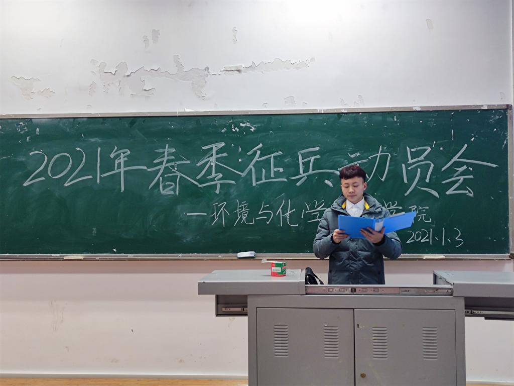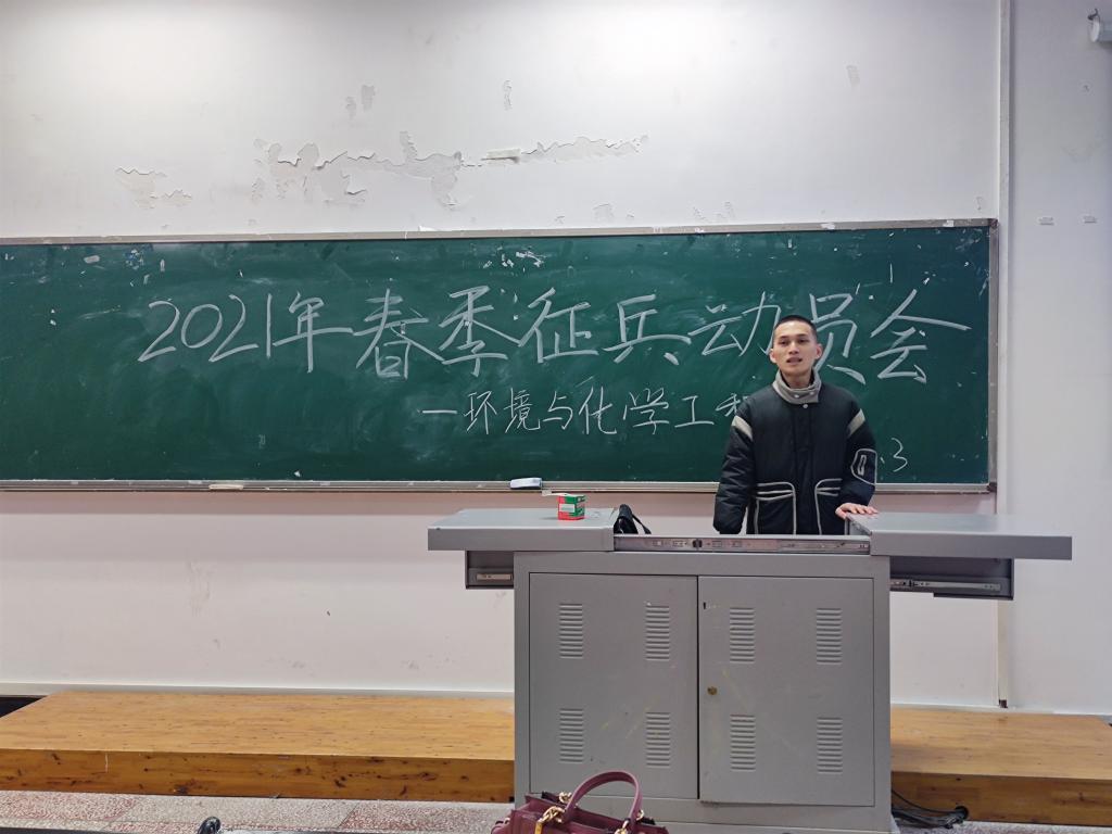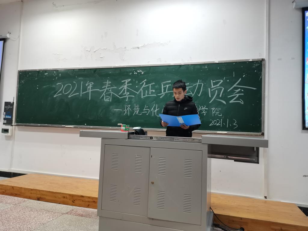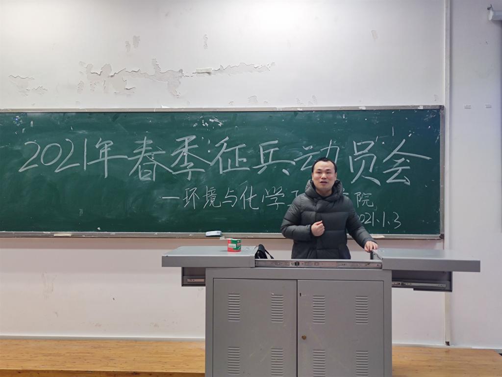 2021年1月3日下午,太阳成tyc234cc于明辨楼二栋召开2021年春季征兵入伍动员会。学工办副主任、各年级辅导员、优秀退伍大学生、各年级男生参会。