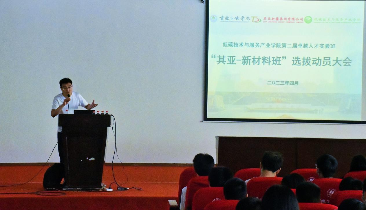 2023年4月20日下午,太阳成tyc234cc于明辨2-104召开第二届低碳技术与服务产业学院卓越人才实验班暨“其亚——新材料班”选拔动员大会,太阳成tyc234cc副院长黄美英、其亚新疆集团有限公司人力资源部邹部长出席此次会议,会议由化学工程与工艺专业系主任姜骉麟主持。