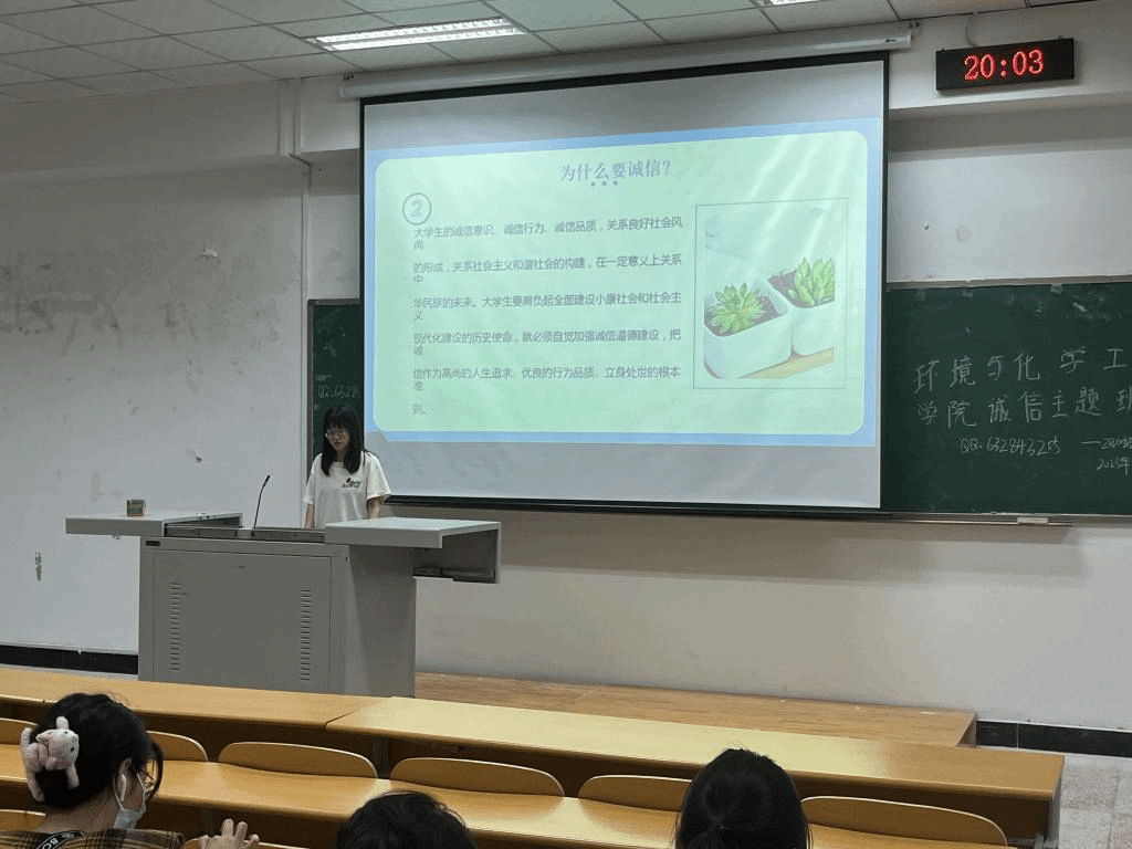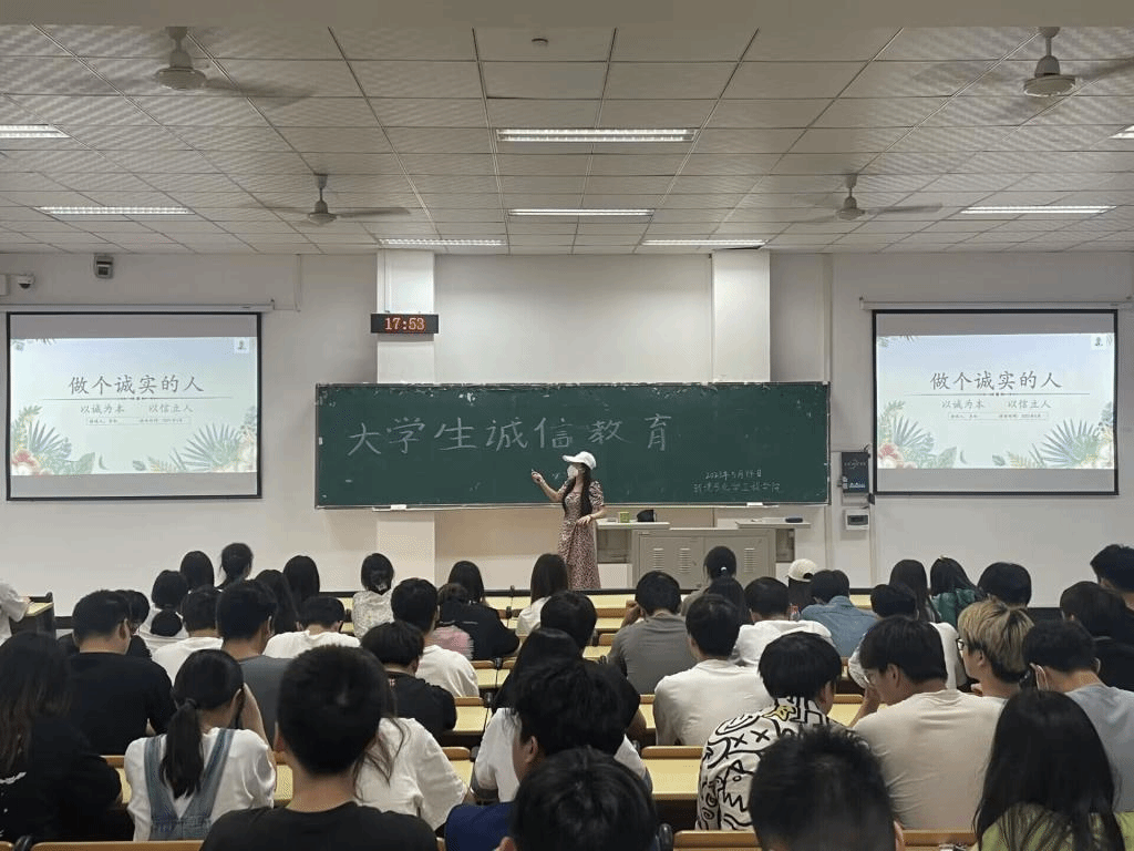 做新青年,要求真务实,学好担当重任的本领。各年级辅导员以诚信为主题展开班会,会上她们向同学们阐述了诚信的内涵,并通过分享身边的诚信小故事和微电影帮助同学们进一步认识诚信的可贵,使同学们更深刻地理解了诚信的内在含义与要求,其中她们提到了当前大学生的诚信现状,告诫同学们要避免作业抄袭,考试作弊等问题的发生,并呼吁同学们提高自身修养,养成诚信品质。“大家在大学学到的本领,是立足于社会的基本,是建设国家的基本功,所以在学业上一定要求真务实,不得有半分虚假。作为一名大学生,维护诚信精神和科学的尊严是你们义不容辞的责任。希望大家可以始终端正治学态度,老老实实做学问,勤勤恳恳下功夫,这样才能不虚度大学时光,学到真正的本事。”