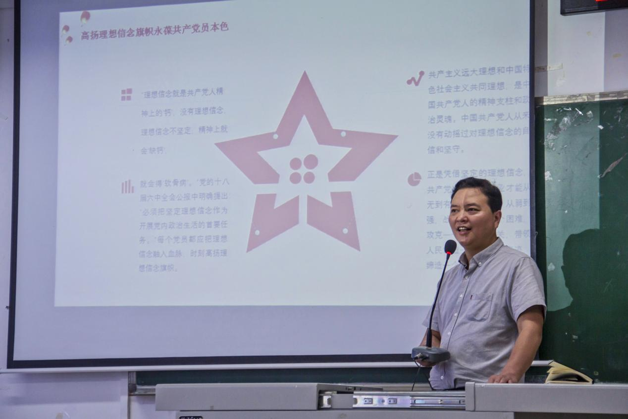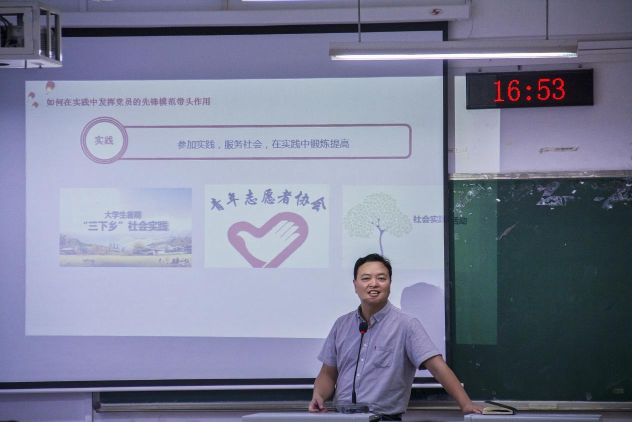 刘健以“入党誓词”为切入点,提到“奉献责任担当是党员的基本素质”。党内法规要求党员要讲奉献、有作为、有担当,要明确“中共党员和普通老百姓不一样,需要时刻严格要求自己,时刻向更高的标准看齐!”作为学生党员,如何在实践中发挥党员的先锋模范带头作用?刘健从多维度剖析:学好理论、提高素质,在政治上带动同学进步;勤奋学习、掌握本领,在学习上与同学共同进步;参加实践、服务社会,在实践中锻炼提高;干好工作、服务同学,不计较个人得失。