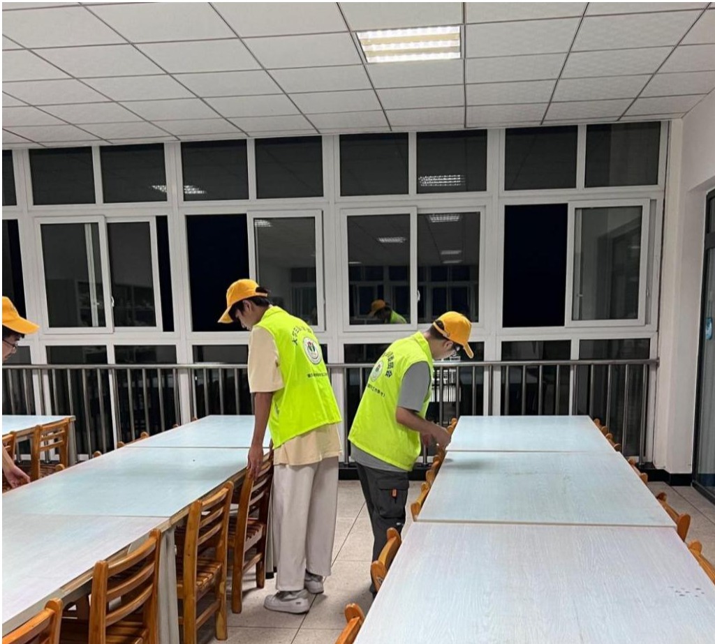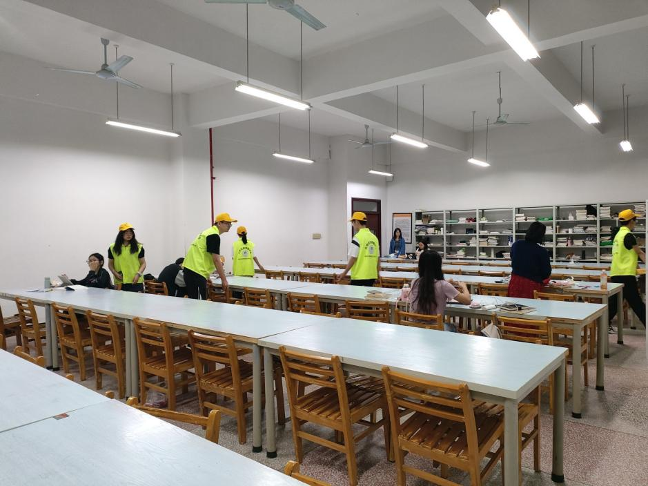 在体验式助管活动中,志愿者们在明辨楼执勤。主要是对带简餐、衣着不得体和行为不得当的同学进行规劝,同时在上课后五分钟记录迟到人数。在自习室清理活动中,志愿者们主要工作是将桌面上和凳子上的物品放置在桌椅附近的地面上或置物架上,同时将未放置好的凳子归位,提醒自习的同学带走随身物品。