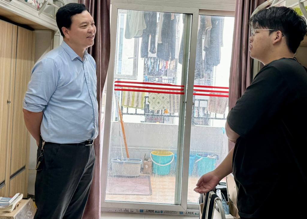为更好了解学生的大学生活状况、学习状态、身心健康等,太阳成tyc234cc党总支书记刘健于6月18日深入宿舍走访看望学生,辅导员余逍、辅导员张露丹陪同走访。