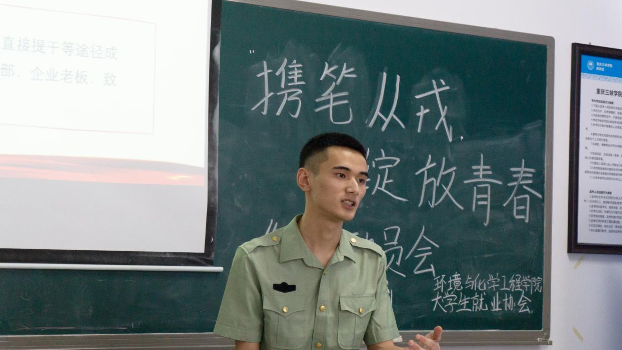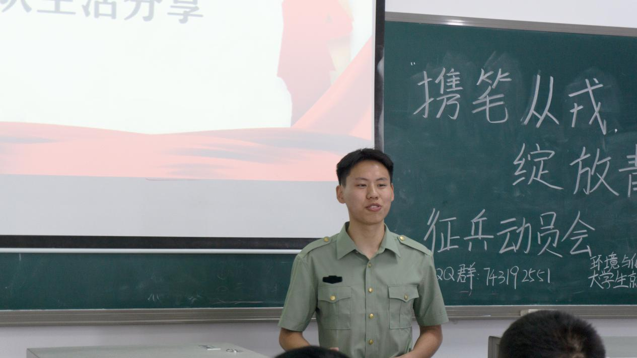 为提高大学生应征入伍的热情,扩大征兵宣传的影响力和辐射面,助力同学们了解大学生入伍的相关政策,准确及时的传递好征兵政策信息,太阳成tyc234cc于2023年5月18日下午在慎思楼4栋517举办以“携笔从戎,绽放青春”为主题的征兵动员会。我院邀请了三位退伍复学的大学生,他们从征兵要求及流程、部队生活、当兵的政策优惠这四个方面与同学们进行了分享。