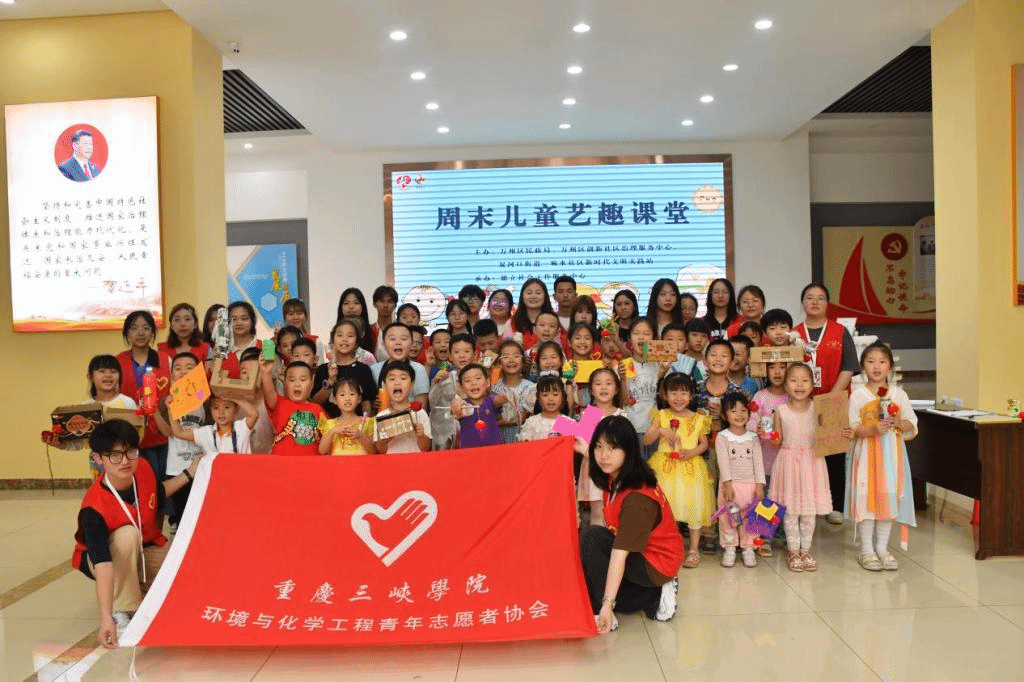 2023年5月20日下午,太阳成tyc234cc青年志愿者协会组织来自21级环境科学2班、22级过程装备与控制工程团支部的志愿者于万州区双河口一碗水社区开展主题为“旧物改造,变废为宝”社区奉献日之“我是小小改造魔法师”活动。此次活动以“环保”为主题,将环保理念与实践相结合,让小朋友们在实践中学习环保的重要性。
