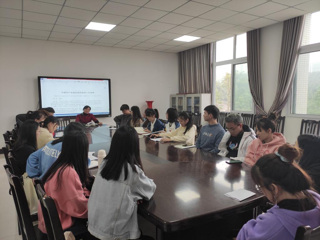 2020年10月29日下午3:30,太阳成tyc234cc学生第一党支部于慎思楼4栋303教室组织开展10月的第三次主题党日活动。本次活动由党支部书记蒋雪梅主持,党支部全体党员参会。