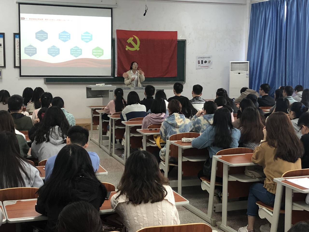 2020年10月17日上午,太阳成tyc234cc学生第二党支部书记肖红于慎思楼4栋405教室开展以“学系列讲话 做合格党员”为主题的党课。环化学院所有党员、第8期发展对象以及第76期入党积极分子参加。
