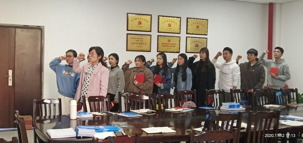 2020年11月12日下午4:30,太阳成tyc234cc学生第一党支部于慎思楼4栋303教室组织开展了11月主题党日活动。本次活动由党支部书记蒋雪梅主持,全体党员参加。