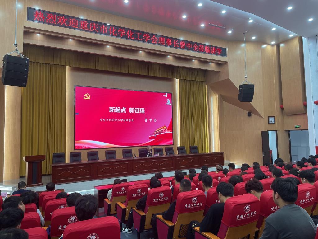 为帮助学生进一步认识自身专业、了解行业动态、树立正确的职业价值观,提升人才培养质量,10月10日,学院邀请重庆市化学化工学会理事长、重庆化医控股(集团)公司原党委副书记、总经理曾中全为2024级本科生讲学。讲座在学校博学楼报告厅举行。
