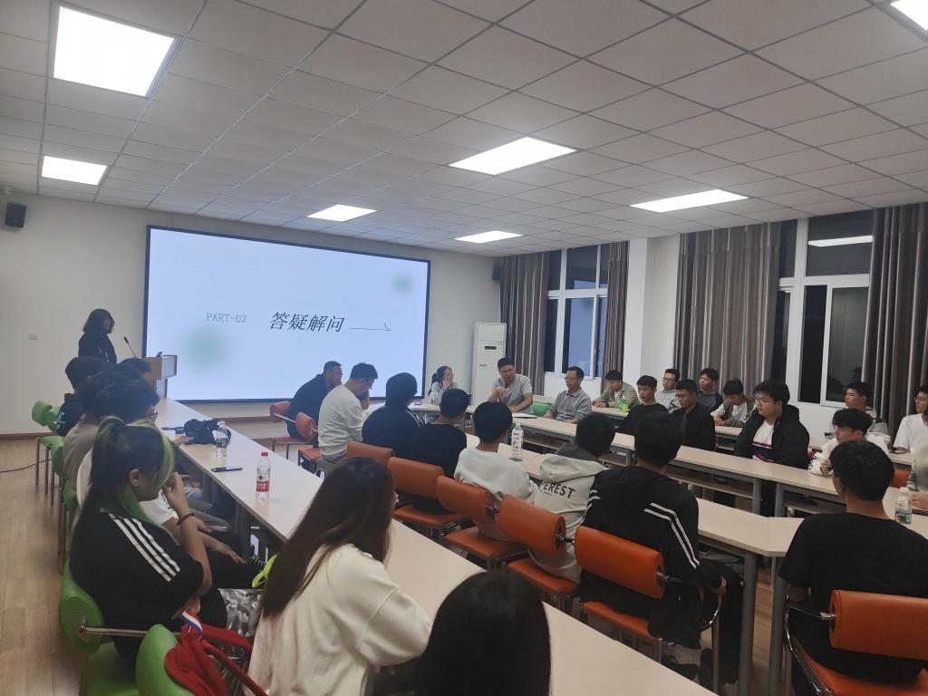 随着肖红老师的优雅开场,她逐一介绍了到场的各位老师,每一句话都饱含着对新生们的殷切期望与鼓励。随后,师生交流环节将现场气氛推向高潮。新生们积极踊跃,纷纷就专业毕业去向、就业前景、参与竞赛的机会及科研方向等关切话题向老师们抛出问题。老师们则以专业的视角、耐心的解答,为新生们拨开了迷雾,指明了方向,更点燃了他们心中对专业探索的热情之火。