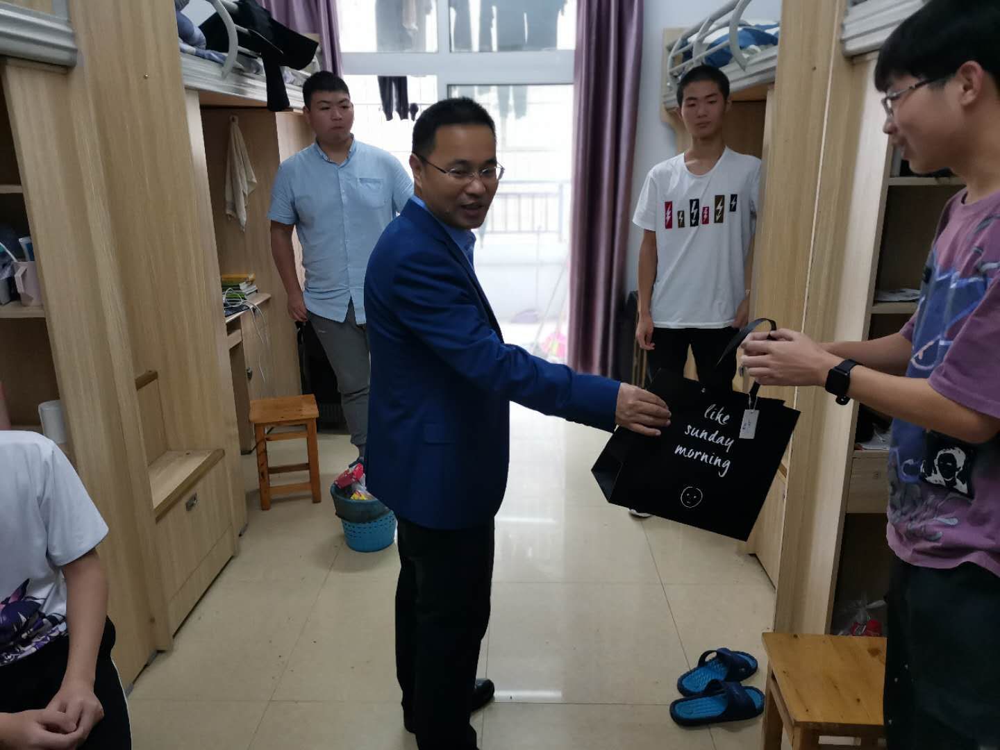 2020年10月1日上午10:00,环化学院党总支书记、院长、党总支副书记在各年级辅导员的陪同下深入学生宿舍,看望慰问国庆假期留校的453名本科和研究生。