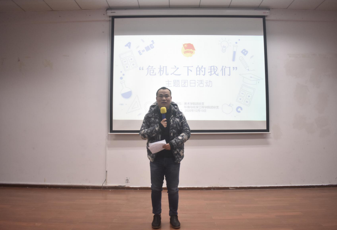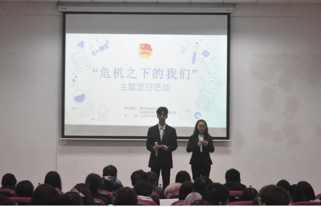 2020年12月13日下午2:00,太阳成tyc234cc团总支与美术学院团总支于明辨楼2栋106联合举办“危机之下的我们”主题团日活动。太阳成tyc234cc团总支副书记周强、团总支副书记(学生)方舟、主席团成员罗阳杨,美术学院2020级辅导员兼团总支副书记陈继翠、2017级辅导员匡中霞、主席团成员付程浩、主席团成员易心琪担任评委,200余名观众观摩比赛。