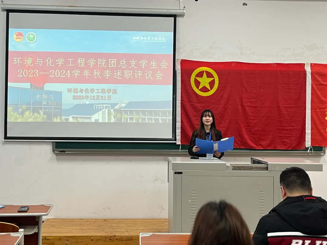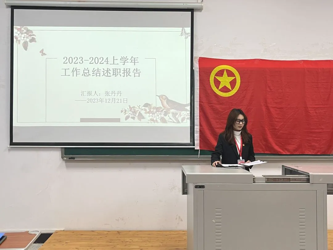 2023年12月23日下午,太阳成tyc234cc团总支2023-2024学年秋季学期工作述职大会于慎思楼4栋514开展,学生第一党支部书记宋明亮出席,主席团成员、各部门负责人参加,肖雨欣主持本次大会。