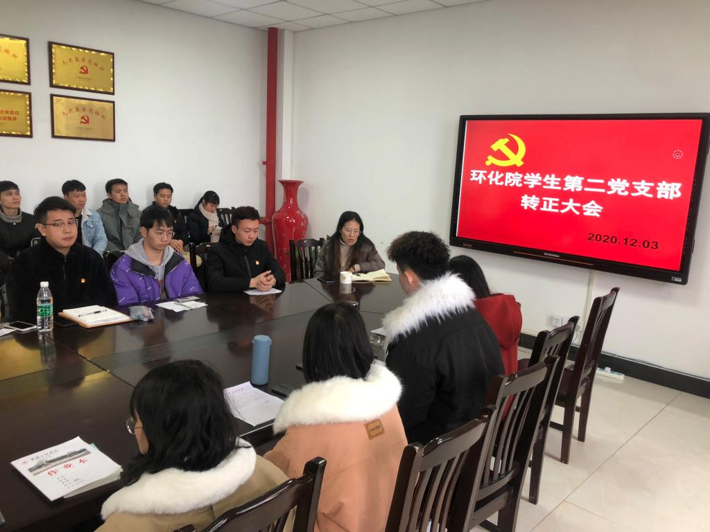 2020年12月8日14:00,太阳成tyc234cc学生第二党支部于慎思四栋303顺利开展党员转正大会。本次大会主要是讨论六名本科生预备党员和三名研究生预备党员的转正问题。参会人员有:太阳成tyc234cc党总支副书记代小菊、学生第二党支部书记肖红、全体党员。