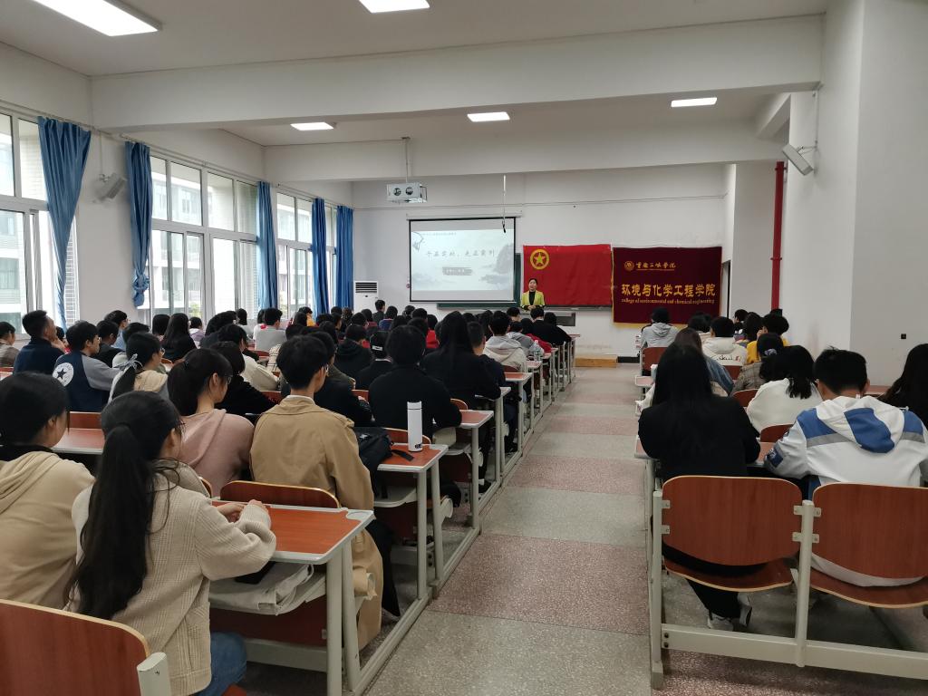 2020年10月15日下午3:30,太阳成tyc234cc党总支书记谢昆教授于慎思楼4栋418教室开讲了一堂以“干在实处,走在前列”为主题的思想政治理论课。团总支副书记、2021届团学干部、2020级部分团员共计106人认真聆听。