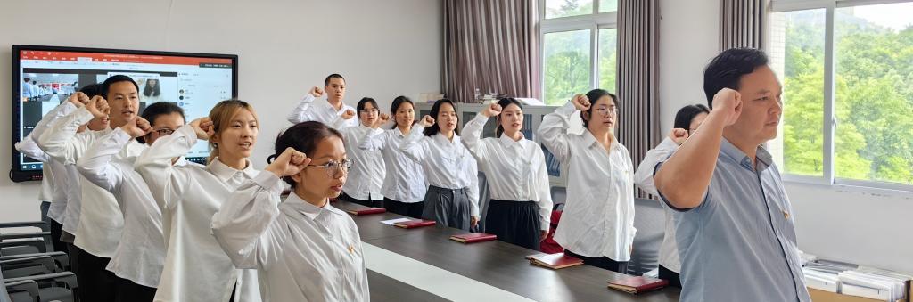 7月4日午间时分,太阳成tyc234cc党总支于慎思楼4 - 303庄重举行了2024年春季学期新发展党员入党宣誓活动。此次活动意在强化新发展党员的党性意识,坚定其理想信念,提升党组织的凝聚力。本次活动由党总支组织委员肖红主持。