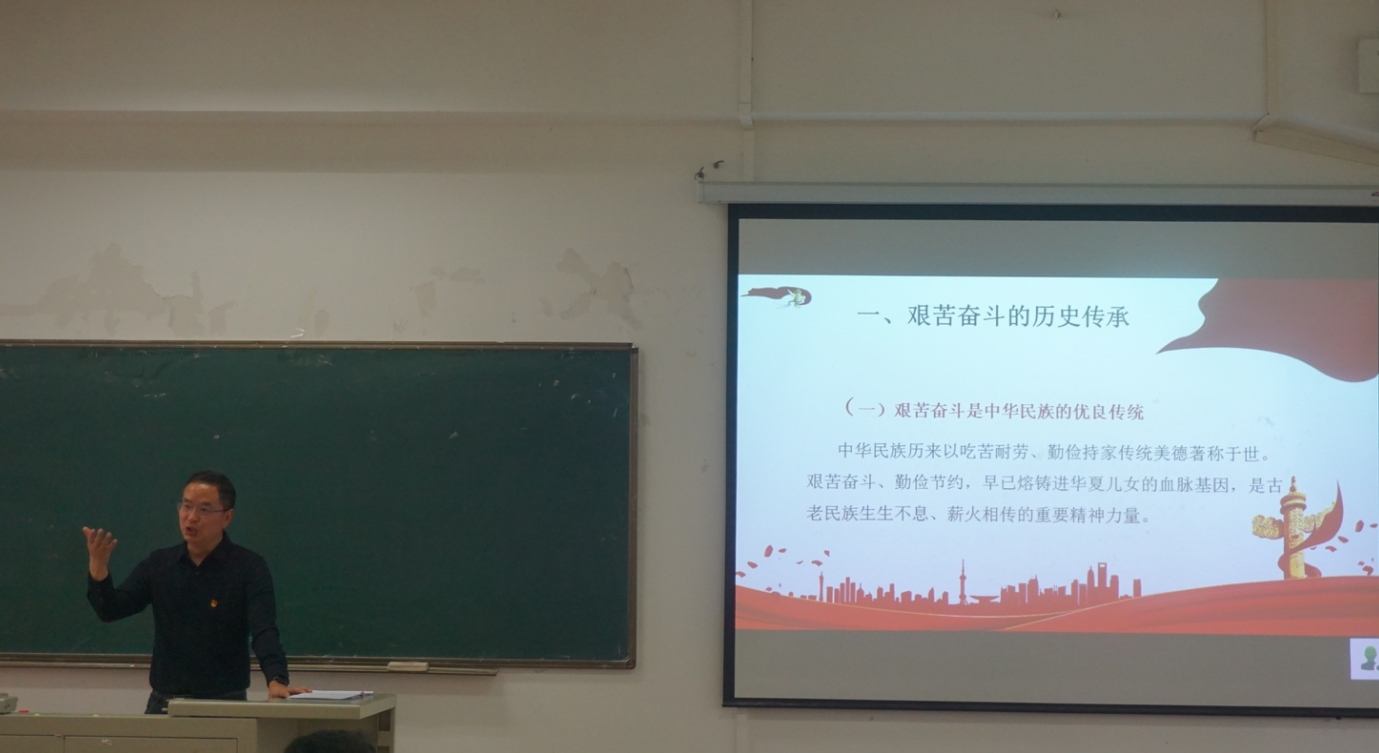 党课伊始,支部组织兼纪检委员周才波介绍本学期支部学习开展情况;随后,胡均国围绕“传承艰苦奋斗的红色革命精神 争做新时代优秀共产党员”主题,从“艰苦奋斗的历史传承和‘两个层面’‘三个维度’看艰苦奋斗对青年学生的指导意义”两个方面展开,新时代的艰苦奋斗应从个人层面和政府层面去理解,要从理论维度、价值维度、实践维度明确艰苦奋斗对青年学生的指导意义。党课尾声,胡均国希望全体党员同志要学史明理、学史增信、学史崇德、学史力行。通过党史学习教育,加强党性锻炼,砥砺政治品德,践行知行合一,不断提高把握大局大势,应对风险挑战的能力。