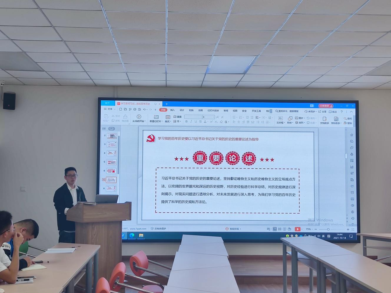 10月14日,环化学院教工第二党支部在慎思楼4-206开展10月主题党日活动,会议由党支部书记宋先雨主持,17名党员参加。