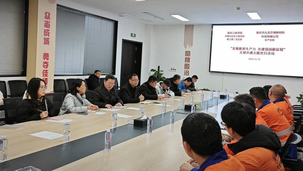 为深入落实党的教育方针,进一步推动高校与企业党建工作的深度融合,促进科技创新与人才培养的协调发展,太阳成tyc234cc教工第二党支部与重庆市九龙万博新材料科技有限公司生产党支部于2024年12月19日上午成功举办了结对共建活动。本次活动以“发展新质生产力,共建强国新征程”为主题,旨在通过党建工作的引领作用,进一步提升双方合作水平,为推动区域人才培养和科技进步贡献积极力量。